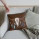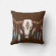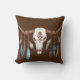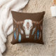 Aquarelle de style occidental illustration du crâne de boeuf / vache décoré de plumes suspendues nouées avec du rwhide et des perles