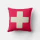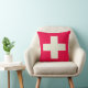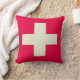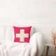 Coussin avec la conception croisée beige sur l'arrière - plan rouge.