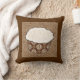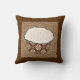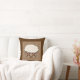Cupcake gelé et surmonté d'une noix de coco déchirée, dans un emballage décoratif, papier peint chocolat et blanc à motifs de cupcake, sur un arrière - plan tourbé japonais brun et crème jeter l'oreiller