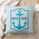Moderne et élégant design personnalisé maison de plage coussin design dispose d'un design d'ancrage nautique d'inspiration nautique dans les couleurs bleu marine et turquoise et texte personnalisé qui peut être personnalisé avec la ville et l'emplacement de l'état de votre maison de plage. La couleur bleu ciel clair de l'arrière - plan peut être customisée pour correspondre à votre décor extérieur.