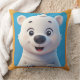 A cheerful, cute cartoon polar bear character on a clean blue background, ideal for children's projects, mascots, packaging, posters and winter or Arctic themed designs.
