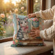 Coussin Cute Chat sur Porche avec Fleurs et Patchwork