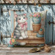 Ce charmant design présente un adorable chat tabby gris aux yeux clairs et un arc en vichy rose, assis doucement sur un porche rustique entouré de détails fantaisistes. L'esthétique cosy du cottagecore s'anime avec des fleurs pastel douces aux lancers vintages, des paniers tissés et des chaussures surannées reposant sur des marches en bois. Encadrée par une bordure en patchwork colorée, toute la scène ressemble à un instantané d'un matin de printemps paisible dans une maison soigneusement entretenue. Parfait pour tous ceux qui sont attirés par la déco pastel, l'élégance chic et désuète, ou la chaleur d'images de campagne nostalgiques, cette oeuvre ajoute un sentiment de confort et de joie douce partout où elle est exposée. Son style d'aquarelle douce et ses détails complexes en font l'endroit idéal pour évoquer les vibrations du printemps et un sentiment de vie lente et confortable. L'IA a généré des oeuvres d'art.