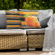 Belle Citrouille contemporaine orange sur un motif design rayures horizontales orange vif, vert citron, blanc et noir. Coussin extérieur couleur automne amusant pour orner votre patio ou porche cabine avec et de l'humeur pour l'automne, les vacances Thanksgiving et Halloween.