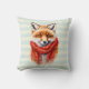 Pillow with an adorable illustration featuring a cute little red fox face with a red scarf wrapped around his neck.