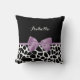 Un mignon imprimé girafe noir et blanc lance l'oreiller avec un ruban violet lavande ceinturé attaché dans un arc féminin. Personnalisez ce joli design poster de animal en ajoutant votre nom. Le côté inverse a un motif de girafe noir et blanc. Image imprimée plate, pas l'arc réel.