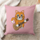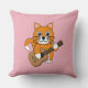 Coussin Cute Orange Chat Blanc Jouer Caricature Guitare