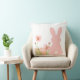 Coussin Cute Pink Easter Bunny with Spring Flowers