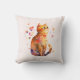 Coussin avec une adorable illustration aquarelle. Un chat tabby orange qui a l'air amical et heureux de voir les coeurs tourbillonner autour.