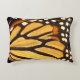 Ce coussin décoratif d'accent comporte un motif abstrait d'une belle aile de papillon de monarque (plexippus de Danaus) en couleurs d'orange, de jaune, or, noir, brun et blanc.