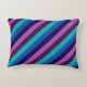 Un coussin d'accent avec un design motif coloré de bandes diagonales en turquoise cool, bleu océan, bleu marine, violet prune et lavande.