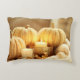 La coussin aux accents tamisés du soir donne une sensation de chaleur et de confort avec un design de citrouilles tricotés à la main et des bougies blanches brillantes sur un plateau en osier. Les couleurs sont les crèmes, le bronze et le blanc.
