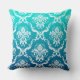 Coussin Damas Florales Blanches Sur Gradient Turquoise