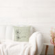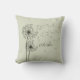 Dandelion graphique inspirant "Vœu" sur un coussin vert poussiéreux.