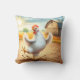 Joyeux poulet dansant dans la saleté avec soleil matinal brillant et grange de ferme