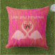 Flamant rose Dance Coussin extérieur. Profitez de l'élégante paire d'oiseaux charmants sur un arrière - plan de corail et rose chaud. Nautique, tropicale, côtière ! Idéal pour n'importe quelle chambre ou espace extérieur, il a besoin d'une pop de couleur et de style. Soyez un ambassadeur de gentillesse avec votre propre citation personnalisée ou gardez la citation "Amour et bonté..." Vous pouvez également ajouter une icône ou tout autre élément que vous voulez à l'arrière.