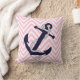 Coussin Dark Nautical Blue Anchor Pink Zigzag Chevron