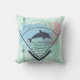 Moderne plage thème intérieur / extérieur coussin de lancer caractéristiques géométrique saut dauphin graphique en style logo avec aquarelle sur aqua clair arrière - plan