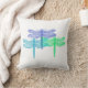 Des libellules dans les tons bleu et vert sur un coussin. Vous pouvez changer la couleur de l'envers de la coussin pour l'adapter à votre décor.