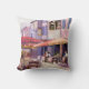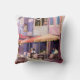 Un café français de pays avec des tables et des parapluies, des rouges et des bleus