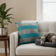 Turquoise et argenté coussin décoratif jeté avec rayures. Élégant coussin rayé pour salon turquoise et argent ou chambre à coucher.