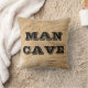 Sur un vieil arrière - plan en bois patiné, ce coussin envoie un message que vous êtes maintenant dans une caverne d'homme. Entrez à vos risques et périls !