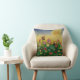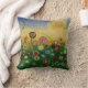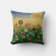 Abstrait coussin de champ Poppy. Lumineux, aéré, lumineux et gai. Les pavots Abstraits dans le champ d'été est lumineux et amusant. Beau champ abstrait de fleurs. Des tons clairs et doux de fleurs rouges, roses, bleues et jaunes ondulent dans un champ par une chaude journée d'été brumeuse. Soleil jaune dans un ciel bleu pâle. Photographie de la peinture originale "Abstrait champ de pavot au soleil".