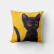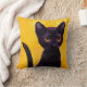 Un petit chat noir avec de grands yeux d'or situant sur un arrière - plan jaune lumineux est décrit sur ce coussin personalizable. Choisissez le coussin il réel ou ajoutez un nom ou une énonciation à l'avant ou au dos du coussin dans votre choix de style de police et les colorez.