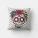 Sucrez le crâne avec les fleurs colorées sur un coussin. Jour du décor mort. Personnaliser avec votre propre texte.