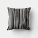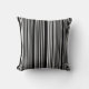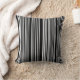 Ce coussin jeté est présenté dans un imprimé à rayures noires et blanches.