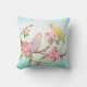 La pomme d'aquarelle fleurit et le coussin d'inséparables par l'artiste Cheng Jing d'aquarelle. La turquoise de couleur d'arrière - plan.