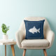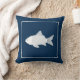 Jetez un oreiller décoratif avec du poisson blanc sur un arrière - plan bleu marine. Voir tous les designs coussins coordonnés chez Sandy Feet Studios.