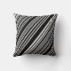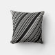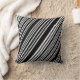 Ce coussin jeté est présenté dans une impression rayée noir et blanc.