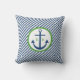Perfectionnez pour une chambre à coucher ou une salle orientée nautique de dortoir ! Ce coussin comporte un arrière - plan rayé diagonal de bleu marine et blanc et un monogramme d'ancre de bleu marine et de vert.