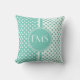 Conception primée turquoise et White Polka Dot Monogram Coussin. Personnalisez avec vos initiales.
