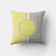 Coussin de monogramme de Polka Jaune, Gris et Blanc. Personnalisez avec vos initiales.