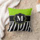 Montrez votre style personnel d'une manière d'amusement avec ce coussin de monogramme d'impression de zèbre de vert de chaux.