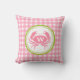 Un coussin avec un design en vichy rose à l'avant et à l'arrière. Crabe rose à l'avant. Personnalisez avec votre initiale.