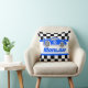 Coussin original de chambre à coucher d'enfants de graphique pour des garçons. Perfectionnez pour une chambre à coucher dénommée de emballage de garçons bleus. Comportant une voiture de sport de bleu sur le graphique a quadrillé des rayures de drapeau. Customisez avec le nom et le nombre ou l'âge de votre choix. Lit actuellement Marlow 01. Graphique uniquement conçu par Sarah Trett.