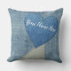 Coussin de patchs cardiaques denim personnalisé en carré de 16 po x 16 po, carré de 20 po x 20 po, et lombaire projette l'oreiller. Disponible en coton, polyester et tissus de plein air.