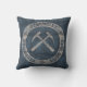 Géologue - coussin de style collégial, en lettres et marteaux de roche croisés dans la rouille et le gris en détresse.