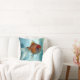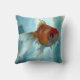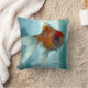 Photographie d'un poisson rouge orange de Pearlscale Oranda, avec un arrière - plan bleu-clair, montré des deux côtés d'un coussin.