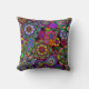 Un coussin avec une conception animée et colorée des signes de paix, de Paisley, des ankhs, des coeurs, et des fleurs. Un éclair bizarre de nouveau aux années 1960.