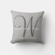 Le coussin fait sur commande de mariage de monogramme a imprimé sur l'arrière - plan de toile gris de faux.