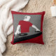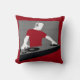 Coussin de Tourne-disque DJ graphique en plusieurs styles/tailles/tissus. Un DJ graphique en rouge profond et gris tourne sur la table d'écoute. L'image a un effet texturisé sur elle. L'arrière du coussin est gris moyen solide. Parfait pour ce DJ dans votre vie ou pour tous les fans de musique !