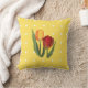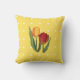 Ce Coussin de tulipes présente mes tulipes d'aquarelle peintes par art numérique sur un arrière - plan jaune avec des pois blancs. Mignonne pour un cottage !
