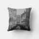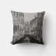Coussin noir et blanc dépeignant un canal de Venise. Conçu d'un de mes croquis à l'encre.