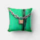 Ce coussin a une serrure et une chaîne qu'on y voit.