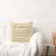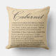 Coussin de vin de Cabernet qui décrit le raisin et comment servir. L'arrière du coussin a l'image vintage d'un groupe de raisin.