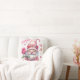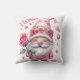 A cheerful gnome dressed in pink with a flower-adorned hat, holding a rose, surrounded by floating hearts, evoking warmth and love.